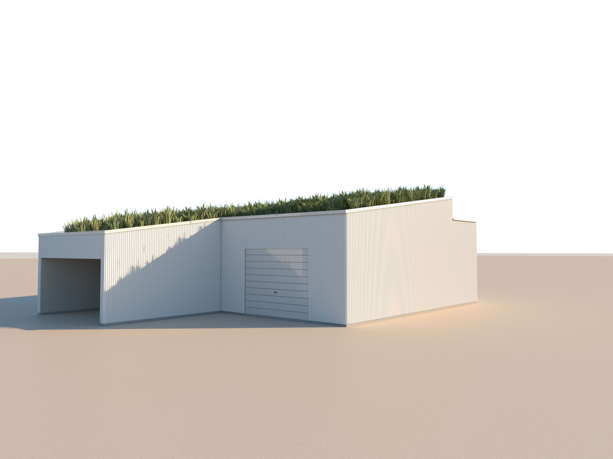 Au surplus, un garage et un abri d'auto sera surmonté d'un toit vert, s'intègrant dans le paysage et contribuant à assurer l'intimité protégera le site des vents provenant de l'ouest.