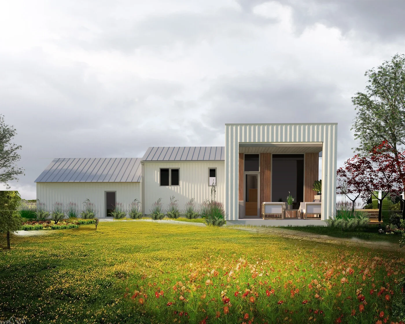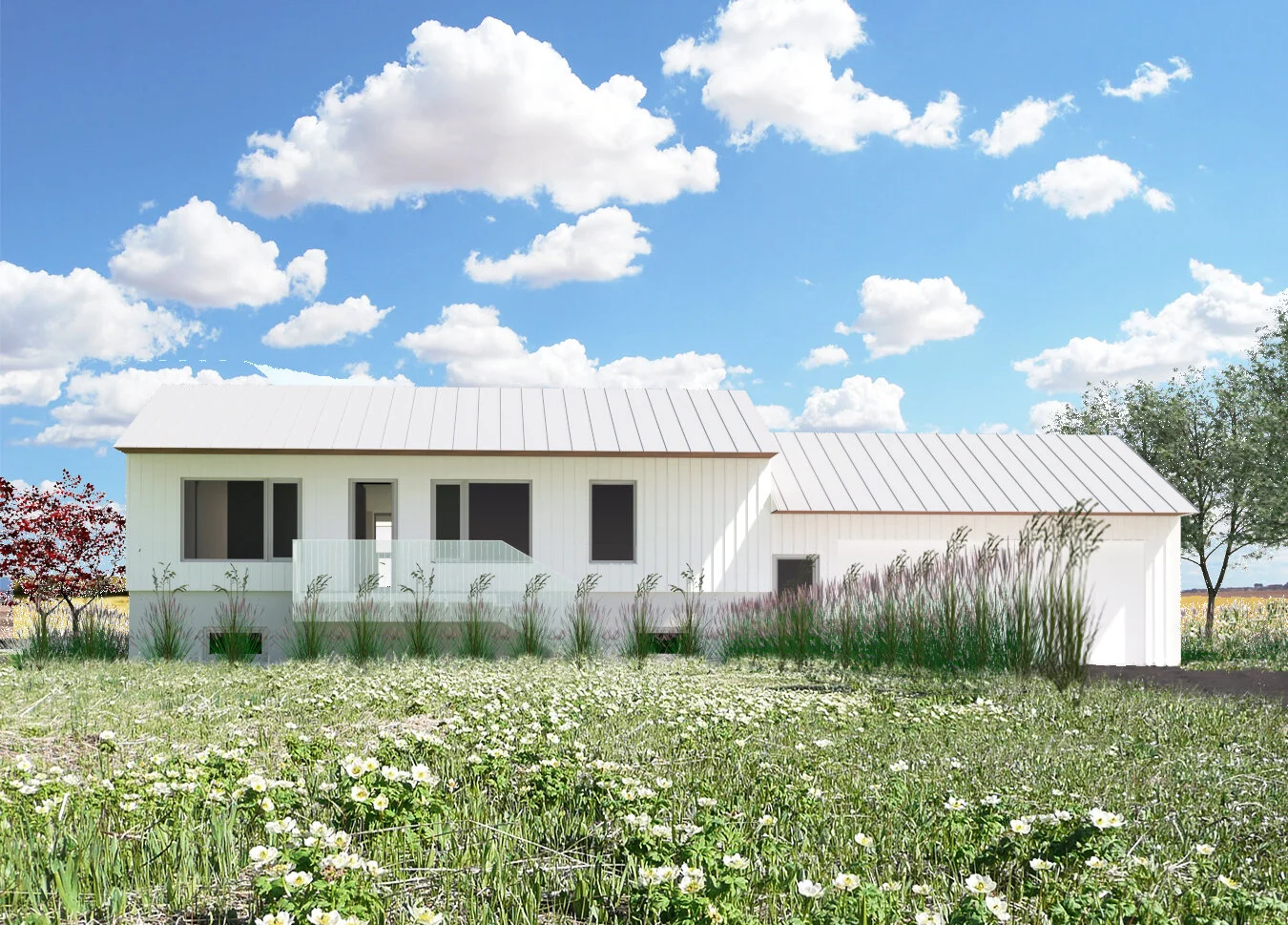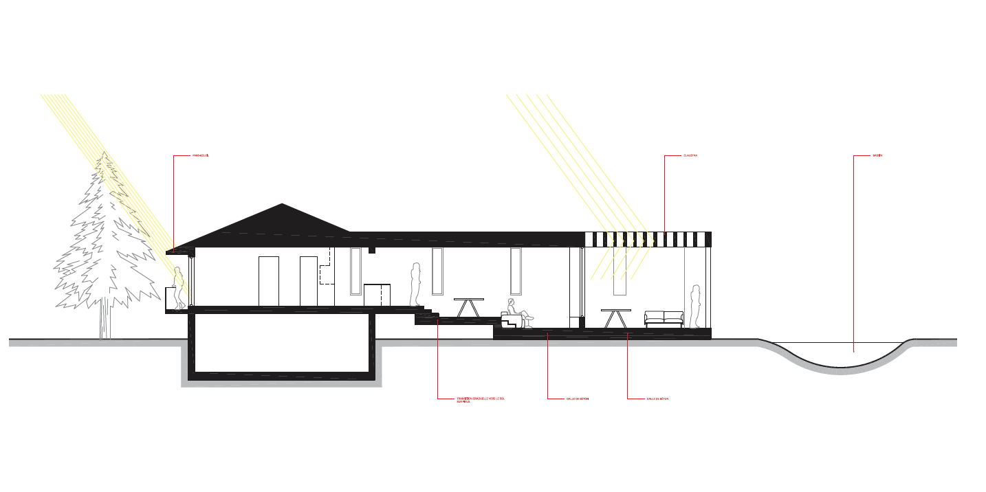 L'approche choisie pour la rénovation de cette maison, est le réalignement du bâtiment dans l'effort d'établir une connexion plus forte avec le paysage apparemment infini au nord. Cela a été accompli en introduisant une addition linéaire qui se compose de trois niveaux qui descendent graduellement au niveau du sol. L'extension permet au client d'expérimenter la lumière des quatre directions cardinales, tout en établissant une relation forte avec le site. Les espaces communs sont alignés sur un axe nord / sud depuis le début avec un premier salon, une cuisine, une salle à manger, un deuxième salon et une pièce extérieure qui comprend une pergola qui capte la lumière du sud et la reflète dans le patio.