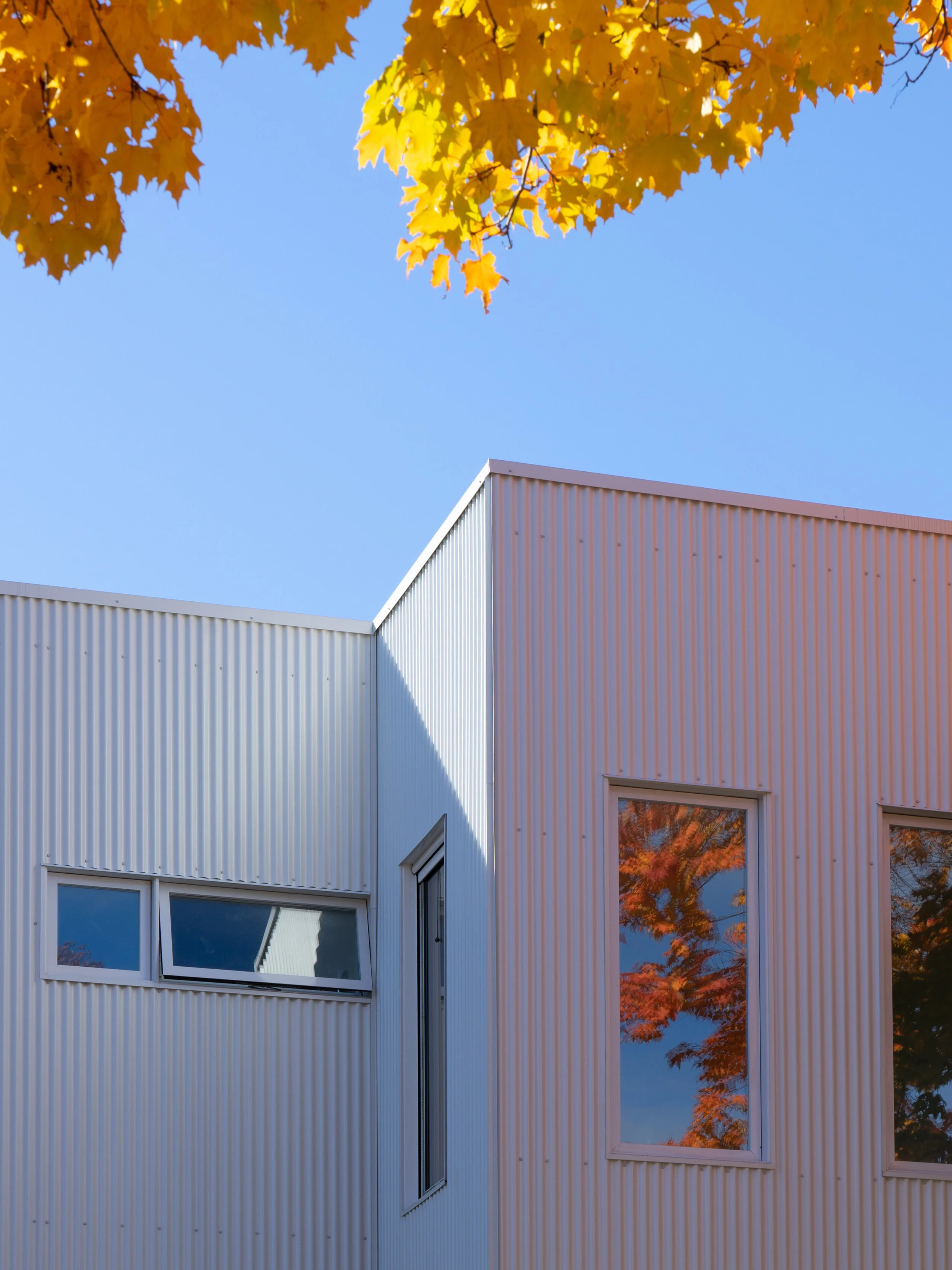 The client wanted to add a storey to the house and we wanted to make sure to maintain that image of that eclectic white house in the middle of lush greenery; this was carried out by maintaining the proportions of the windows, replacing white horizontal siding with a white vertical corrugated steel cladding to accentuate the project’s new verticality and paying homage to the original pitched roof of the home, by maintaining an angle on one side of the house. It was important for us to use a simple, inexpensive cladding, but to detail it with great care; we really liked the idea of using a cheap material with refined details. Town planners can often often prioritize the use of noble materials like brick, but for us, in this part of town, the use of simple and cheap materials is in integral part of the built heritage of this place which we think is important to carry on